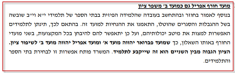 הערות חשובות לגבי מועד חורף אפריל