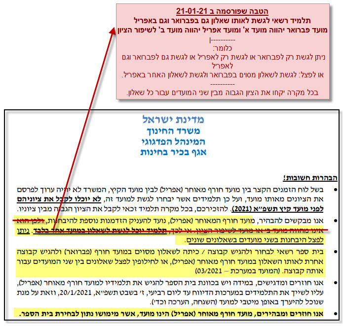 לוח מועדי בחינות אפריל בגרות חורף מאוחר תשפ"א 2021