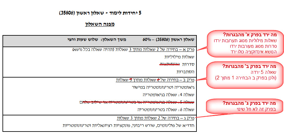 1. בגרות חורף / קיץ 2026 - מבנה ומיקוד לשאלון 581 (806) :