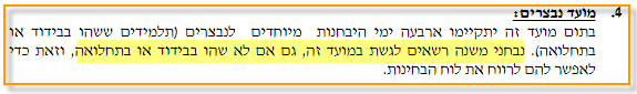 הערות חשובות לגבי מועד חורף אפריל